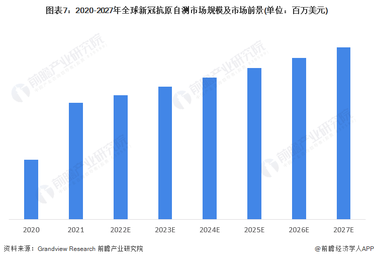 2021年抗原自测市场将超1500万美元;至2027年,其市场规模将受中国市场的打开而扩大超2200万美元。