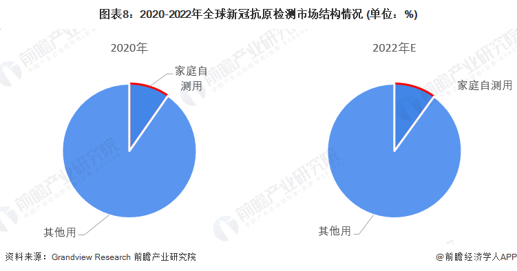 根据前瞻计算出的市场规模进行计算,全球的家庭自测用抗原自测行业的市场份额变化应较小。