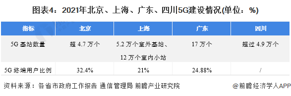 结合各省市经济体量、省市面积规模来看,广东、上海、北京5G基础建设工作较为领先,四川省相对逊色。