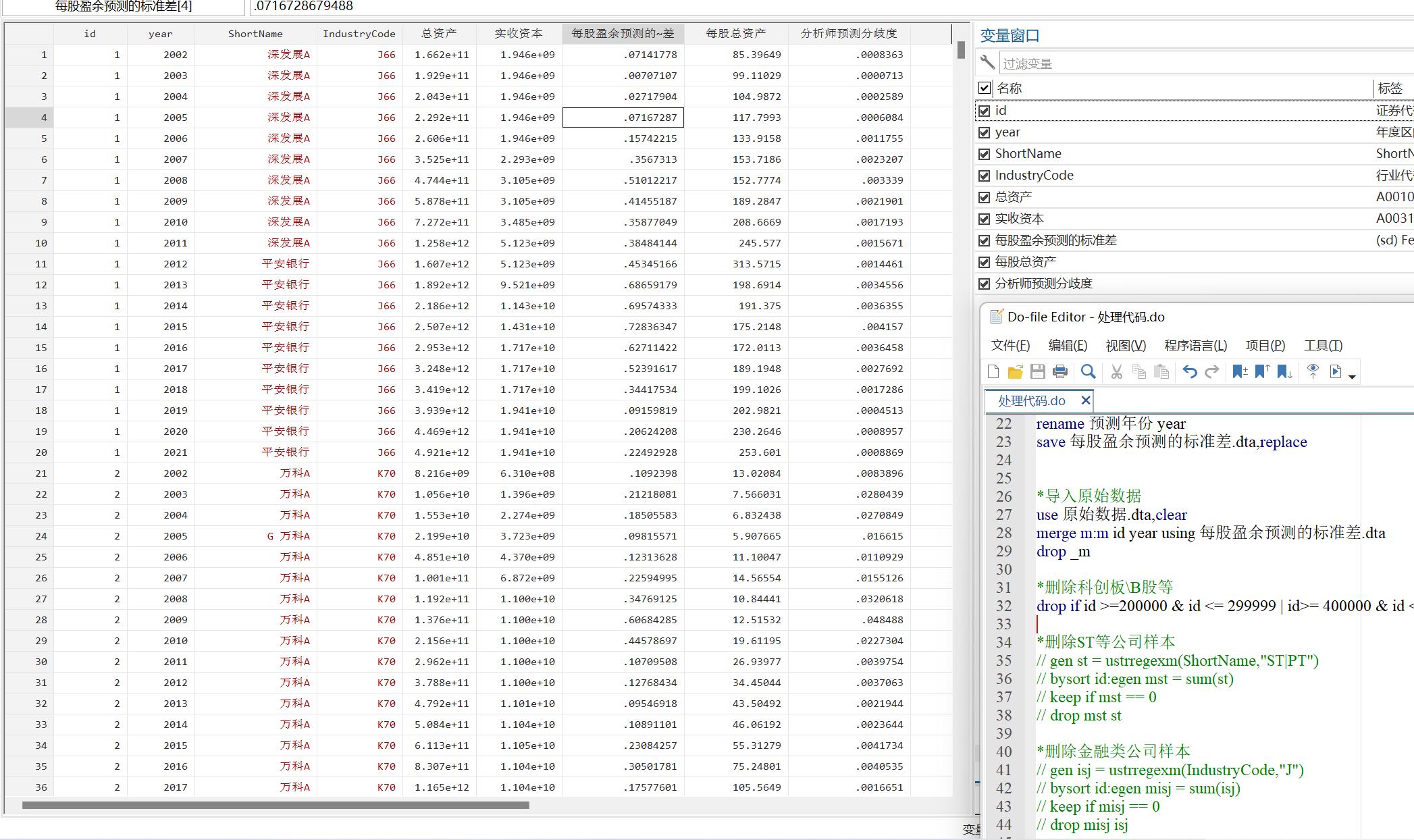 - stata处理代码:数据处理每一步及标注,数据指标的生成代码等
