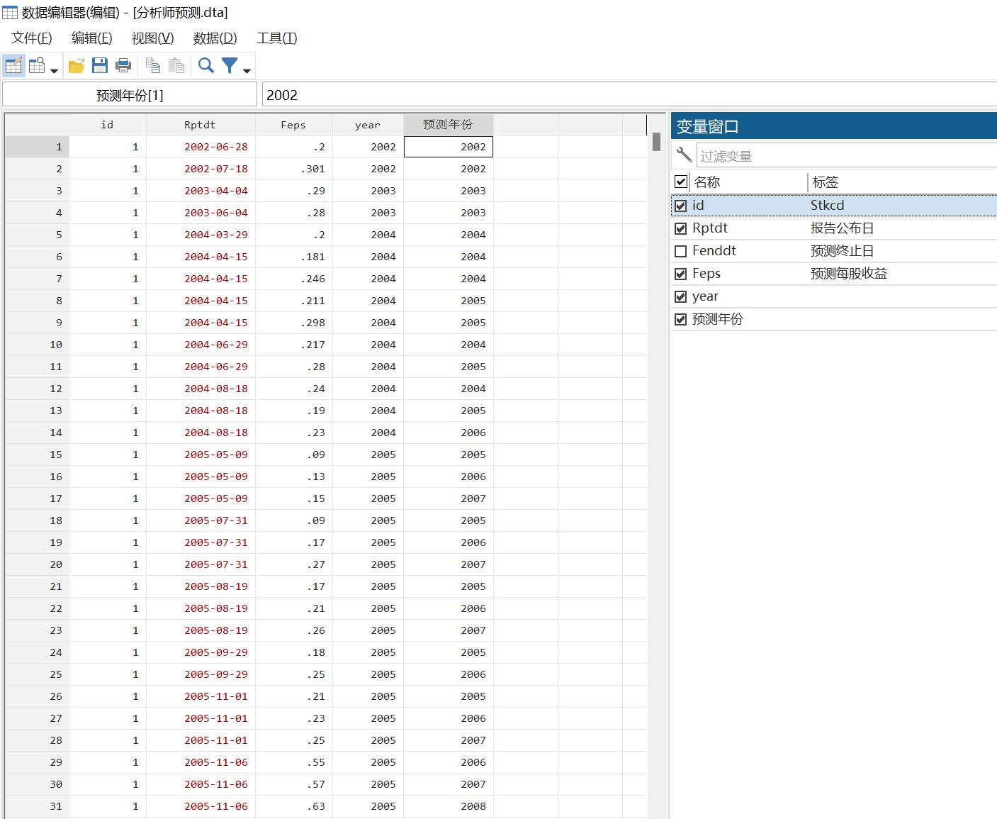 分析师预测数据样本展示