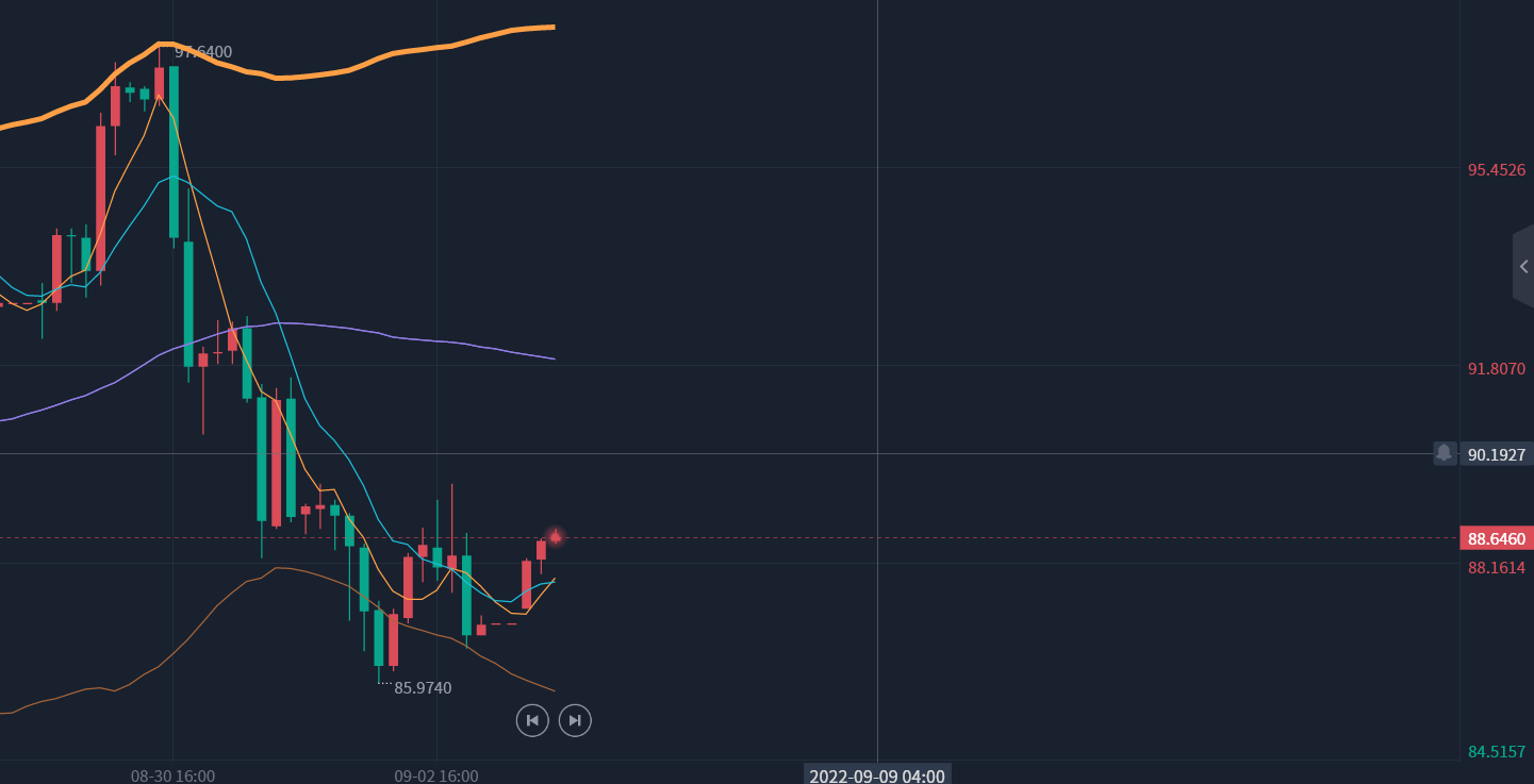 原油:好的进场点位一定是等出来的,周五早给出的86.60直至周末收盘前才给到位置,但是由于已是凌晨所以无法进场,早间来看多头从低位反弹2美金,但还是区间内偏空的态势。因此原油操作建议反弹到89.60或90.40注意存在的卖出机会,风控0.5美金,目标86.70~86.00~83.20。