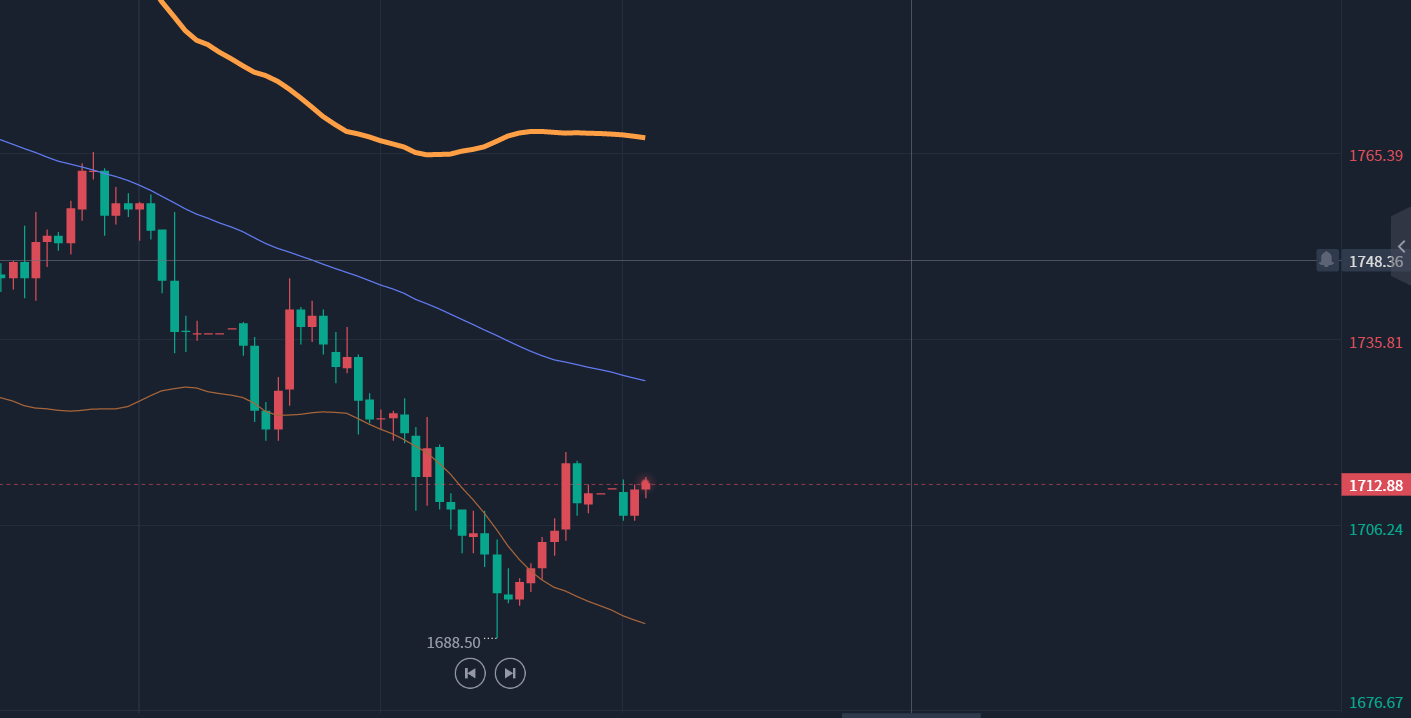 黄金策略:黄金1718空,止损1728,目标1692