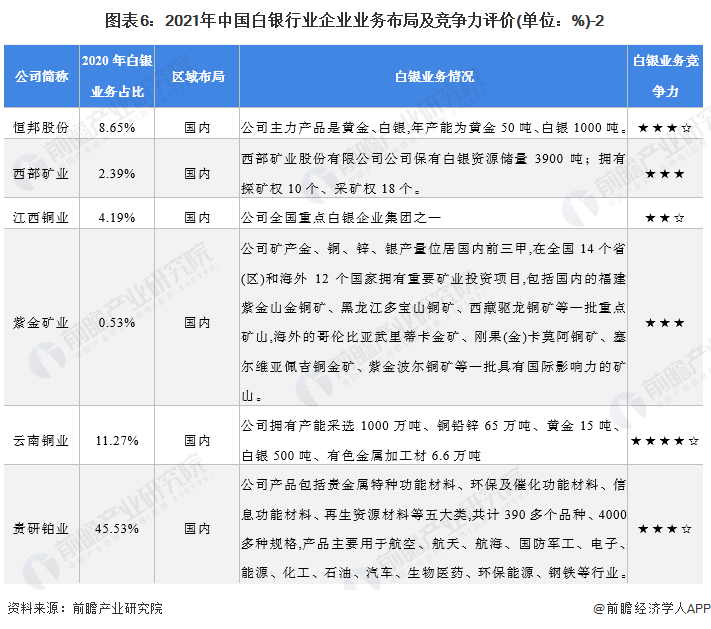 4、中国白银行业企业布局及竞争力评价