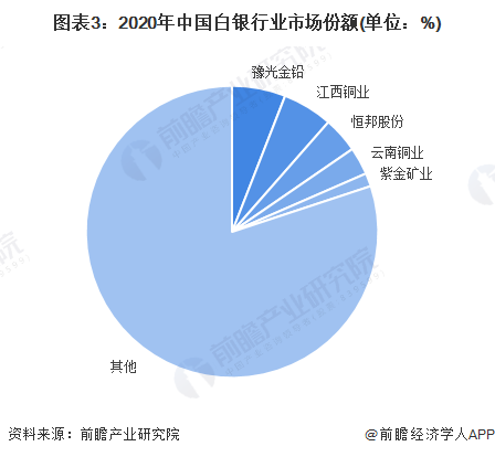 目前,中国白银行业龙头企业分别是豫光金铅和江西铜业。2020年,按白银产量来看,豫光金铅的市场份额达5.9%,江西铜业的市场份额达5.8%。