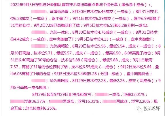 现在总奸根据市场情况,在原有风格上再次与时俱进,每个晚上通过基本面择股,技术面择时,盘面选择风口,从行业本质,产业链上下游,资金进场强度从A股5000只个股精选出10只左右主流品种,通过技术指标、结合前期的高低点、波浪理论、黄金分割率各个周期的均线,再结合图表、成交密集区、该股所处的位置、根据第二天大盘的一个走势进行一个幅度预判,然后计算好次日的技术位,配合仓位和止损保护措施,开盘前按照仓位配置挂单,省时省力不操心,通过实盘反复验证,在市场操作难度越来越让人窒息的背景下,状态越来越好,成功率越来越高,节奏越来越慢,彼此间的磨合越来越棒,是最适合当前股市的操作模式,也是适合所有股民躺赢股市的盈利模式,特别是在最近的持续调整中经受住了考验,得到了大家的高度认可和称赞。一般情况下,选择大盘下跌时技术位埋地雷,赢面非常大,技术位成交后有赚就收,跌破买进价格3个点止损出局。未来注册制全面推行,市场优胜劣汰,技术位低吸模式安全稳健的特性将更加适用市场。