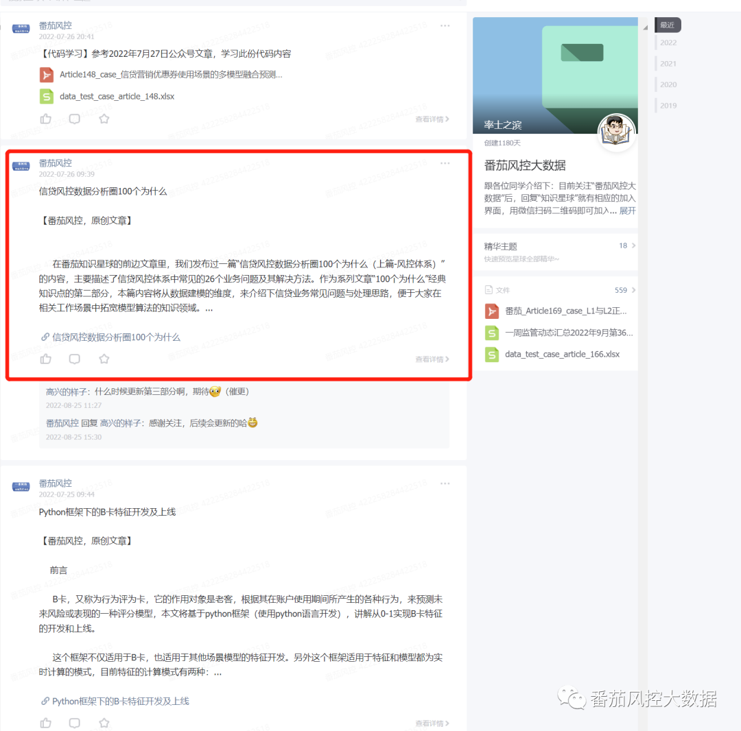 除了本文相关的问答系列,关于风控体系与建模篇文章的内容也一样可在星球上查阅: