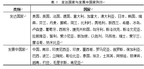 其中,国家是否为发达经济体的虚拟变量在国家为发达经济体时取1,为发展中经济体时取0。