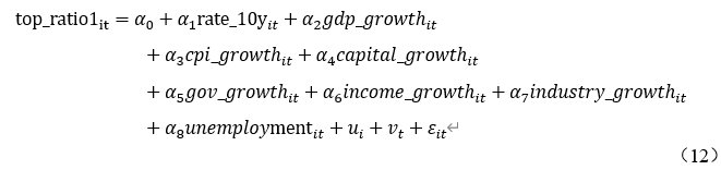 首先,为了检验利率水平的变化是否造成贫富差距的进一步扩大,本文设定以下基本计量模型:
