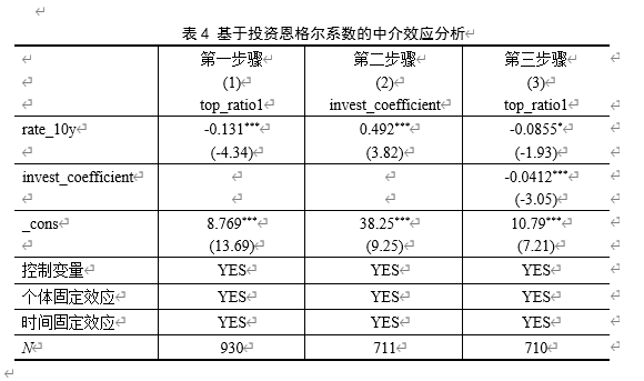 1. 利率变动通过投资恩格尔系数影响贫富分化的机制检验