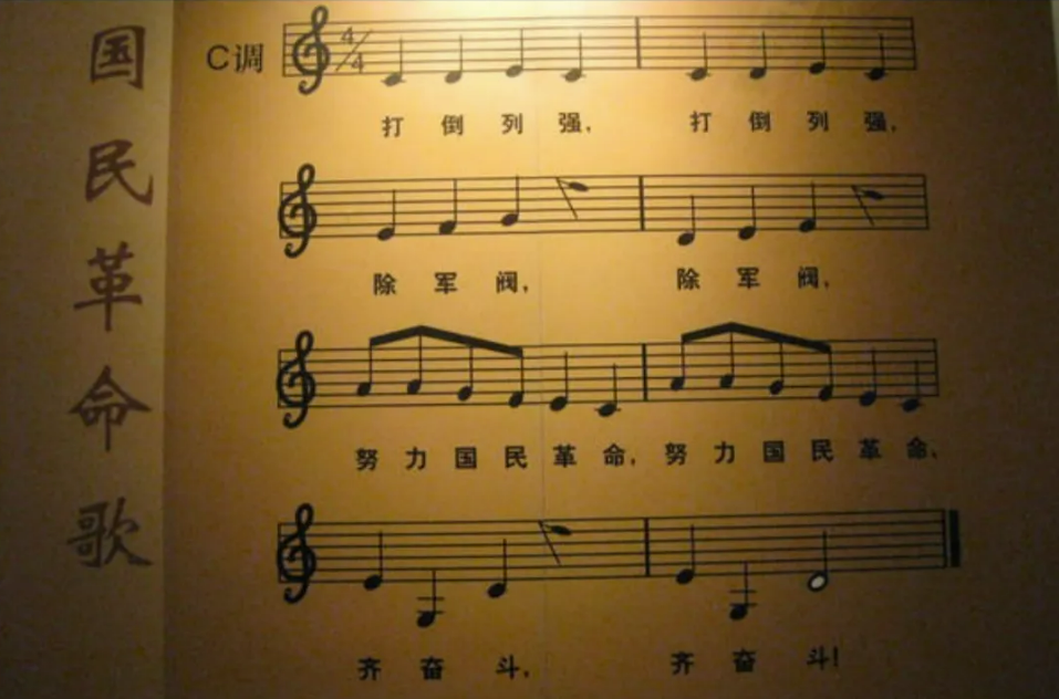 1926年,国民革命军北伐,由北洋政府颁布的国歌《卿云歌》自然也不能作数了,于是黄埔军校政治部又写了一首《国民革命歌》,由广东省教育厅通过作为代国歌,《国民革命歌》的曲调就取自我们熟悉的《两只老虎》!