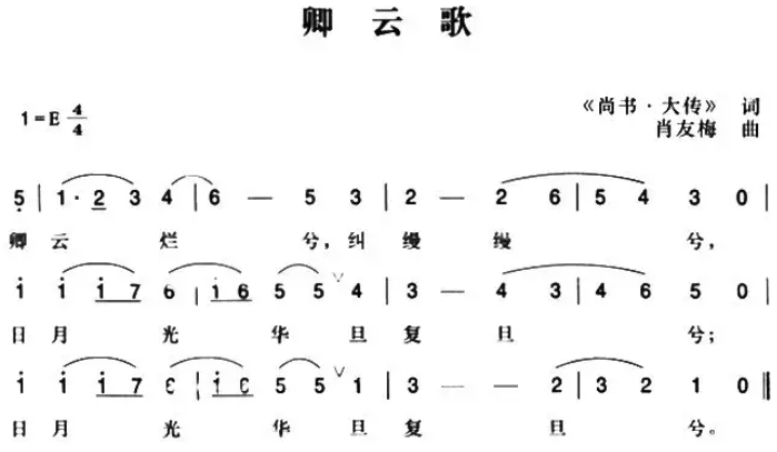 在袁世凯上台以前,民国政府曾用上古时期的诗歌《卿云歌》为词,谱曲后作为临时国歌,这首诗歌相传是舜帝禅位给大禹时百官所唱,描绘了舜帝时期政通人和的清明景象。