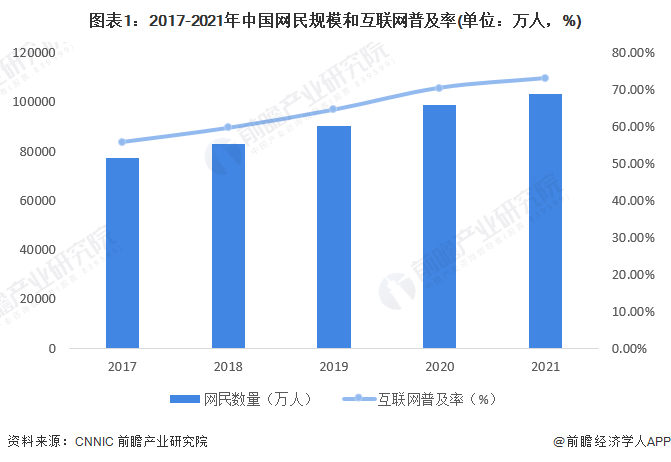 互联网的出现缩短了全球信息传输的时间,大大便捷了普通民众的日常生活和工作。我国网民数量也快速增长,互联网普及率不断提高,截至2021年12月,我国网民规模为10.32亿,较2020年12月新增网民4296万,互联网普及率达73.0%,较2020年12月提升2.6个百分点。