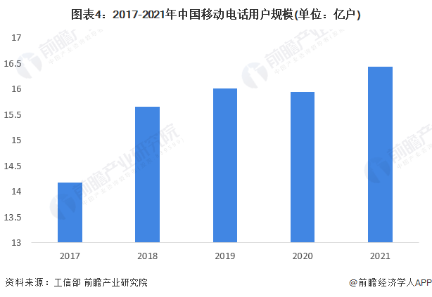 从移动电话用户规模来看,我国移动电话用户规模稳中有增,5G移动电话用户数13快速扩大。截至2021年12月,移动电话用户总数达16.43亿户,全年净增4875万户。