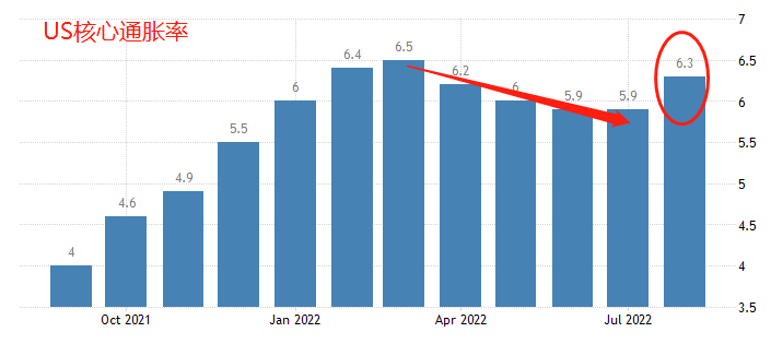 8月份,美国的综合CPI从8.5%回落至8.3%,通胀率连续两个月下降。但是,核心通胀率(剔除食品和能源)却从6.1%上升至6.3%,远超市场预期。“通胀拐点论”破产,押注美联储暂缓加息的资金匆忙退场,隔夜美股“大地震”,道琼斯猛跌3.94%,纳斯达克100指数甚至跌近6%。同一天,美国总统拜登讲话称:美国降低通胀还需更多的时间和决心。这加剧了高通胀“拐点”尚未来临的市场预期,对股市构成叠加利空。