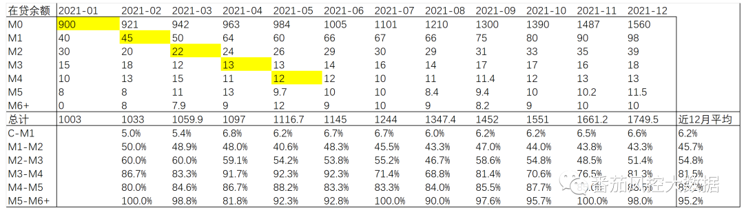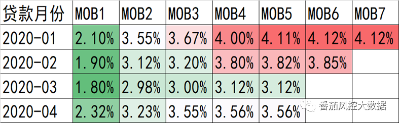 如2021年1月放款的订单,在2021年1月的观察时点即MOB0,在2021年10月的观察时间是MOB9。