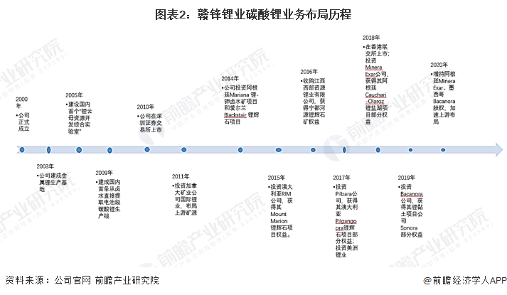 碳酸锂广泛用于锂电、玻璃、陶瓷、电子等行业。随着新能源汽车需求爆发,电池级碳酸锂出现了供不应求的局面。目前,碳酸锂行业的头部企业包括赣锋锂业和天齐锂业,两家企业在碳酸锂业务上的布局历程如下: