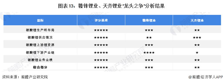 在目前碳酸锂行业中,生产线产能情况、产品供应情况、上游锂资源布局、产业链下游布局都是企业的综合实力体现,而碳酸锂业绩能反应公司的经营概况。基于前文分析结果,前瞻认为,赣锋锂业因在生产线布局、上游锂资源、下游产业链和碳酸锂业务业绩方面占有优势,目前是我国碳酸锂企业中的“龙头”。