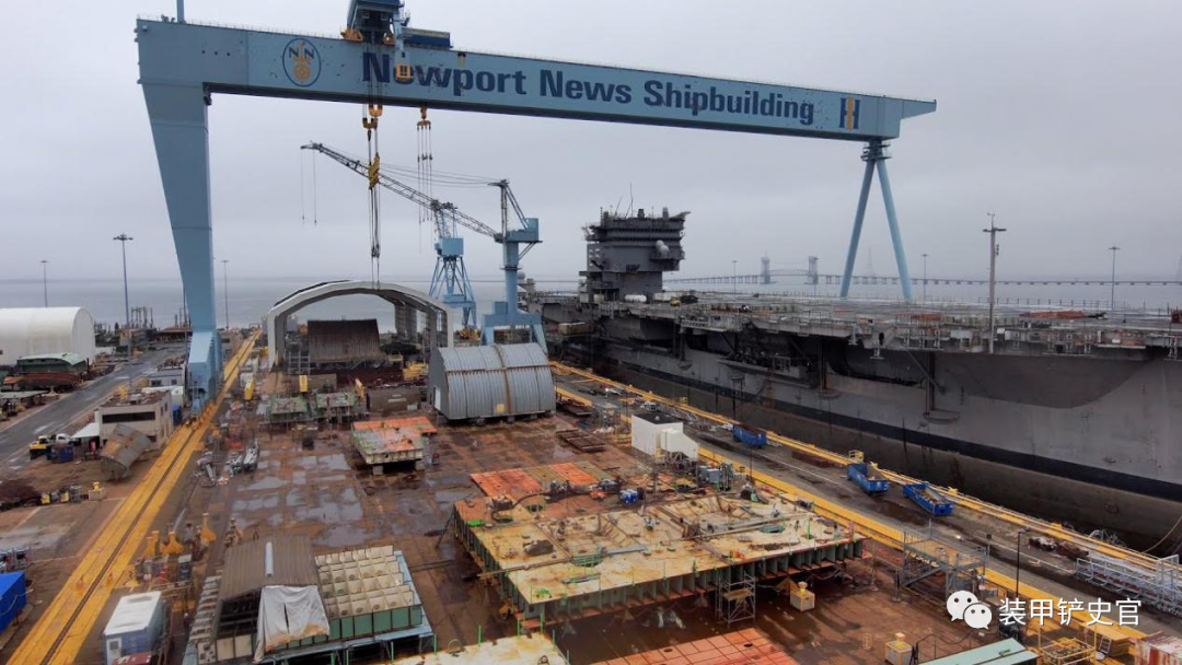 ▲纽波特纽斯船厂内承建“企业”号的船台,一旁可见一艘正在拆解的老“企业”号