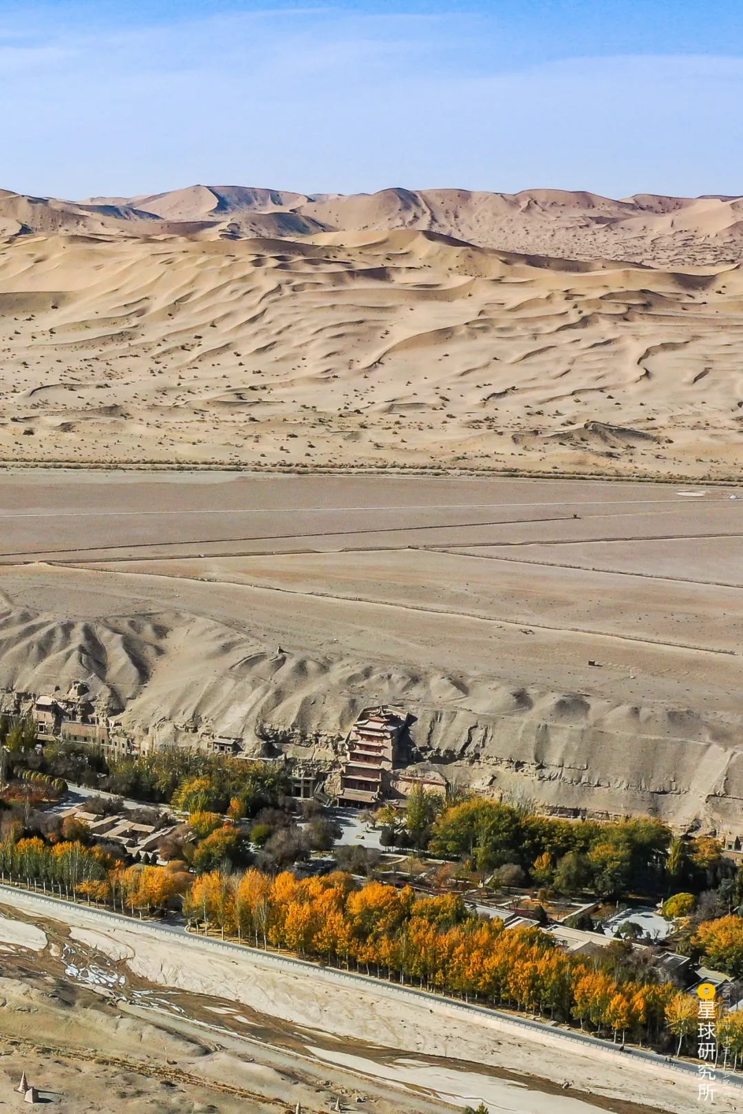 (甘肃敦煌莫高窟及它身后的无垠沙漠,摄影师@王警)