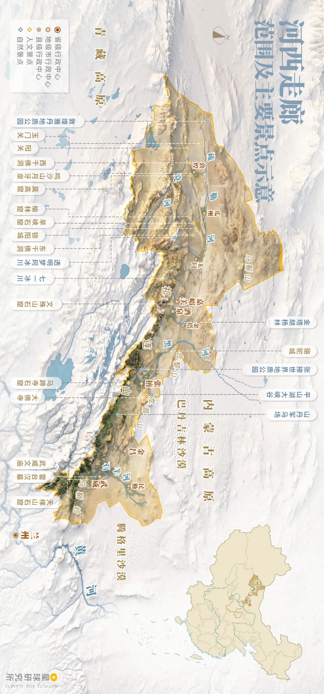 (请横屏观看,河西走廊范围及主要景点示意,制图@吴昕恬/星球研究所)