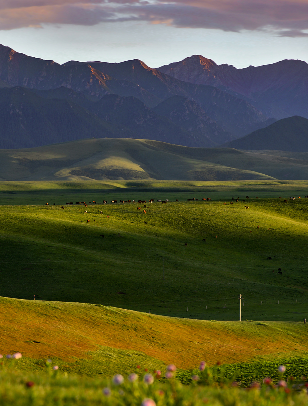 (请横屏观看,在甘肃省肃南裕固族自治县眺望远处连绵的祁连山,摄影师@李春)