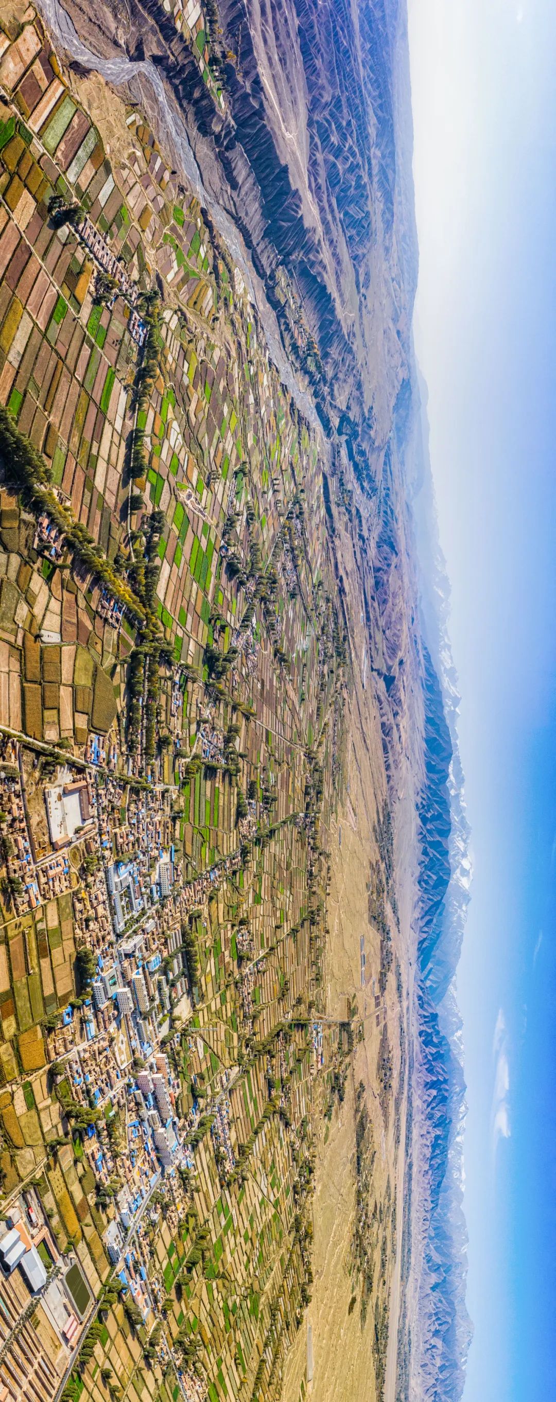 (请横屏观看,祁连山分支野马山-大雪山前的洪冲积扇,摄影师@傅鼎)