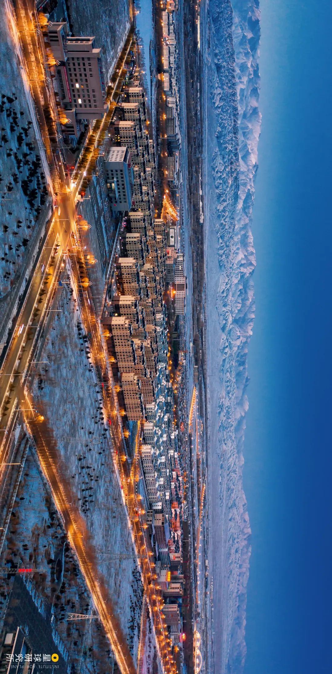 (请横屏观看,祁连山雪景与嘉峪关城市居民区,摄影师@黄茹萌)