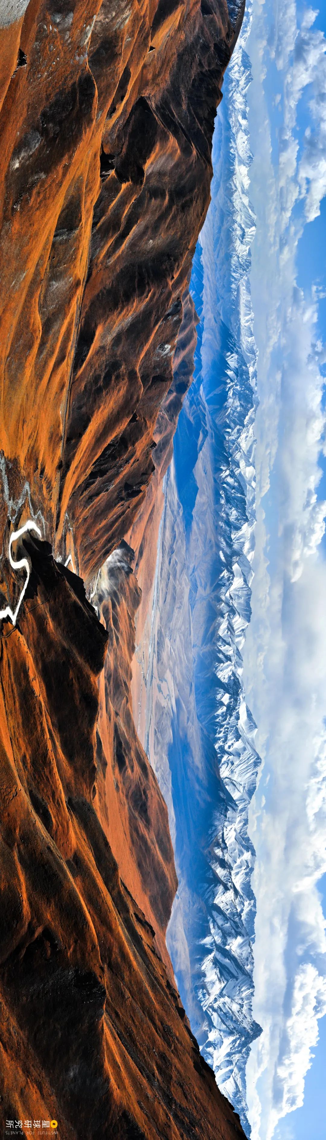 (请横屏观看,超长的祁连山脉,及其最高峰团结峰,摄影师@邱建军)