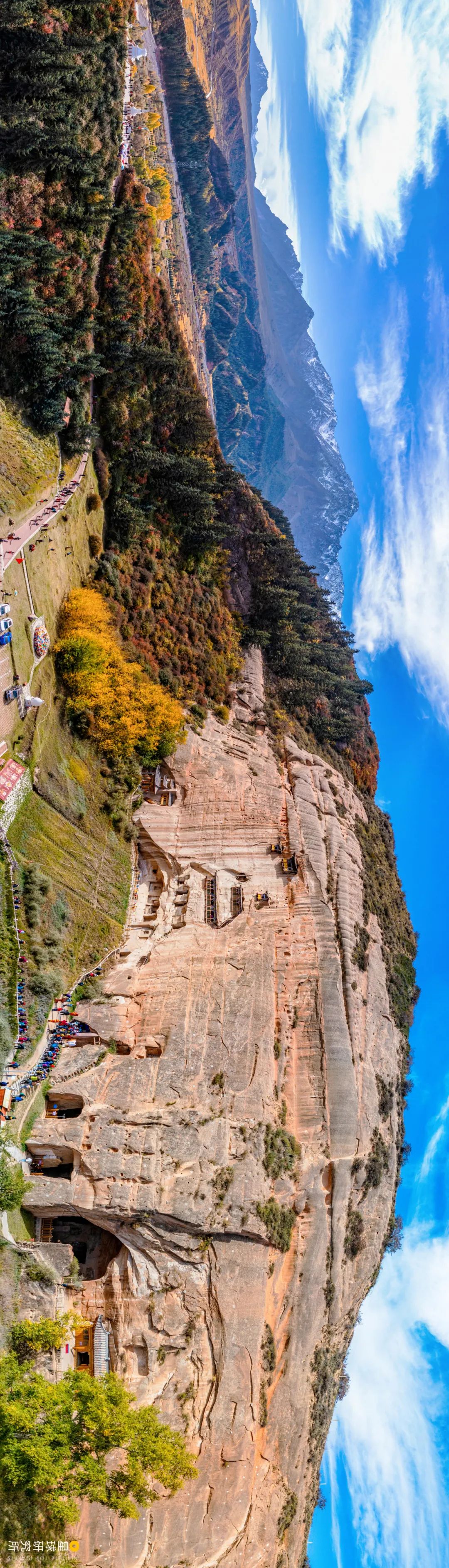 (请横屏观看,张掖临松山的马蹄寺石窟,摄影师@赵高翔)