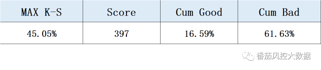 并且在右上角,我们会把ks值做成表格的形式输出: