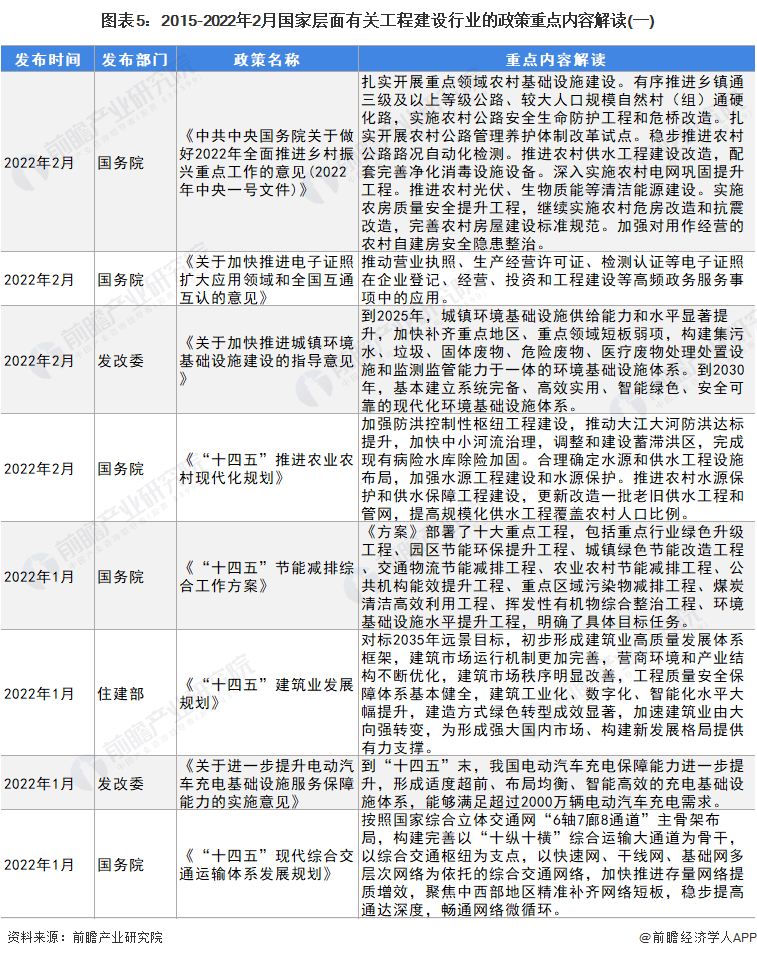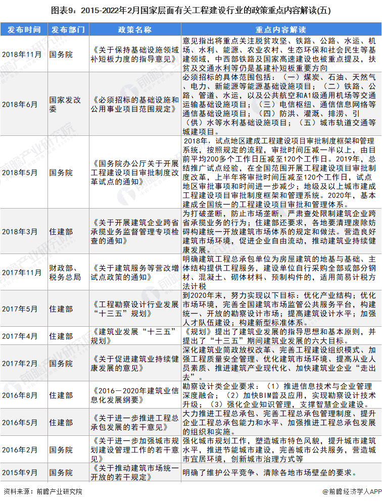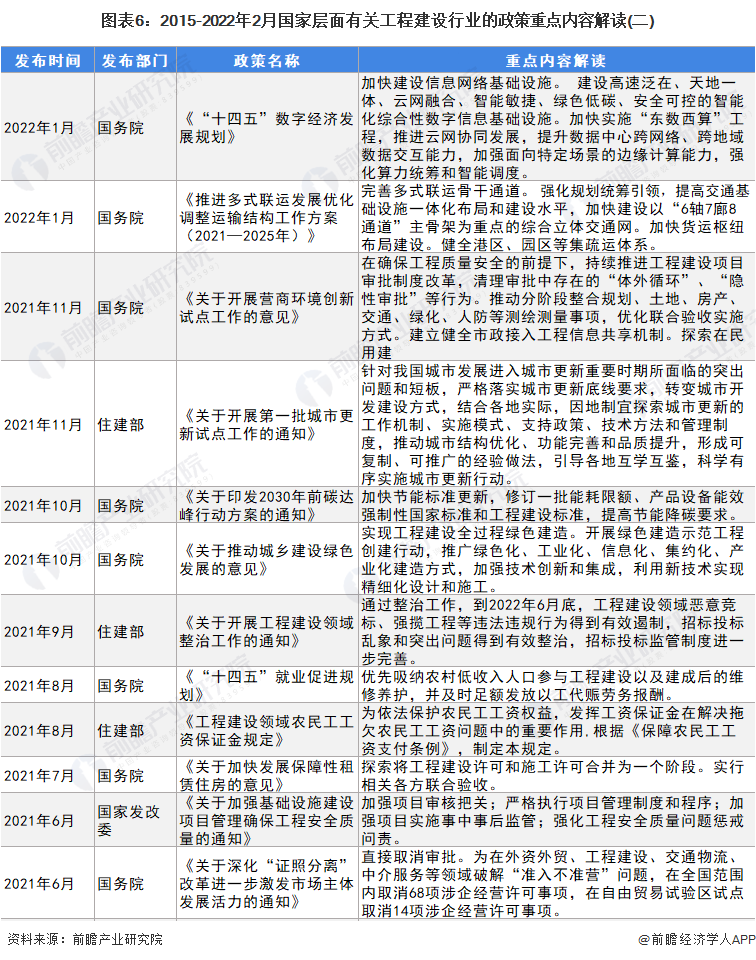 为了保证我国工程建设体系健康有序,国家层面发布了众多政策规划来规范和促进我国工程建设行业快速发展。在国家政策规划的引导扶持下,我国工程建设行业向阳而行。