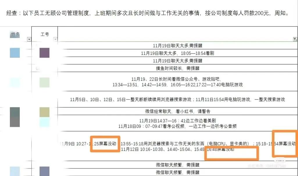 而监控的程度,也细化到工作的每一分钟,包括:你今天有哪些时间处于“无所事事”的状态;