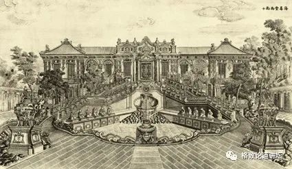 上面地图中红色区域就是西洋楼的范围,它位于圆明园的长春园中,只占圆明园总面积的2%。所以说很多人虽然去过圆明园,但是好像又没有真的去过圆明园。因为圆明园剩下的98%都是中式建筑,但我们的中式建筑是土木结构的,特别怕火。一着火,柱子一倒,整个屋顶就塌下来了。所以我们现在看到的大部分圆明园基本上是一片平地,上面种植了一些树木。