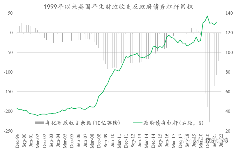 特别是2021年底以来,随着海外能源和大宗商品价格的上涨,英国进口的东西普遍都变得越来越贵,贸易赤字也连创新高,这都是在给英国经济捅刀子啊!换成咱们特别通俗的话来说,挣得少花得多,货币不贬值的话,那就没有天理了。有人可能会说了,美国不也一直这样么?政府每一年的支出都远超收入,年年月月都在借钱借钱借钱;贸易进出口一直是赤字运行,年年花得都比挣得多,而且还越来越多。人家美元为啥就不贬值,而且还在升值呢?答案很简单,美元是世界货币,人家的美元有人要,总有买盘,更重要的是,美国还有世界上最大最深最广的金融市场,50万亿美元的美股,50万亿美元的美债,还有大量大宗商品及其衍生品交易,无数的人(包括很多英国人)都需要把手头的钱换成美元,以便进入美国的金融市场。另一方面,在欧洲能源价格暴涨的情况下,美国还是世界上能源出口国之一。简单说,国际收支平衡表包括了两个账户:经常账户:包括商品进出口、劳务服务、投资收益及单方面转移公司四项内容;资本与金融项目:包括资本转移(投资捐赠和债务注销),土地和无形资产的买入与出售,直接投资,证券投资以及国际信贷、预付款等。你别看美国年年商品贸易巨额逆差,但人家在服务、资本和金融项目上,每年都有着巨额的顺差,外国人赚来的美元,大部分都回流到美国金融市场上去了,这种持续的强劲买盘,确保了美元不会贬值太多。英国,能有这么大的金融市场么?英镑,能有这么强劲的买盘么?简单说,英国经济现在的问题就是:没有王子公主的命,却有着王子公主的病。本来英国经济就没从2008年的金融危机中缓过来,结果2020年又来了疫情危机,而美国联邦政府又不讲武德,使劲儿给国民发钱,搞得其他发达国家,不得不跟上,英国也咬咬牙有样学样,导致2020年底,英国政府债务/GDP暴涨到137%。进入2022年,全球大通胀开启,俄乌战争爆发更是火上浇油,英国需要进口的各项商品,价格都飞速上涨,花着比原来还要多的钱,却买来了更少的东西,为了维持发达国家的门面,英国人还是坚持买买买、买买买,过去几个季度英国的贸易赤字,连续维持在历史最高水平。沙堆上的城堡,就差顺手一推了。