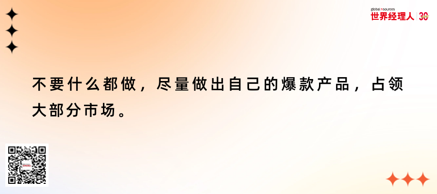 不仅仅看好本地市场,一开始的目标就是全球。不仅仅做好产品的质量,而且持续研发,总比别人快半步。