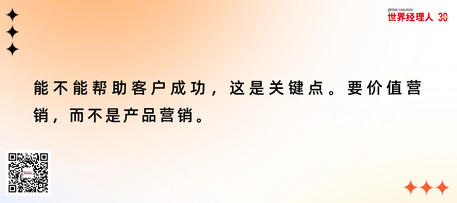 能不能帮助客户成功,这是关键点。要价值营销,而不是产品营销。