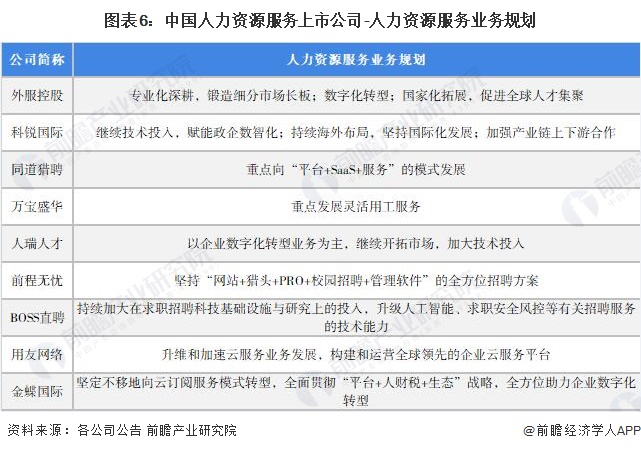 4、人力资源服务行业上市公司人力资源服务业务规划对比