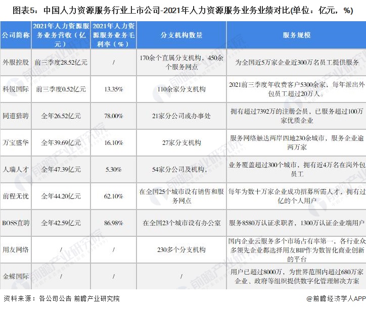 1、人力资源服务行业上市公司汇总
