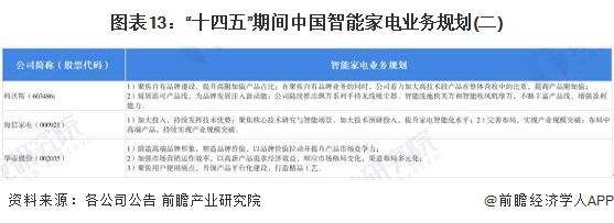 “十四五”规划中指出,我国要在十四五期间培育壮大人工智能、大数据、区块链、云计算、网络安全等新兴数字产业,提升通信设备、核心电子元器件、关键软件等产业水平。在此政策的推动下,智能家电技术水平将持续提高,以此带来更好的用户体验,同时智能家电、智能家居将成为人们生活发展新风尚。因此,我国智能家电公司的业务规划主要在于提高公司的创新能力,聚焦核心技术研究与智能场景,提升家电智能化水平;其次,龙头企业还持续深耕国内市场、拓宽国际市场,以扩大营销规模。
