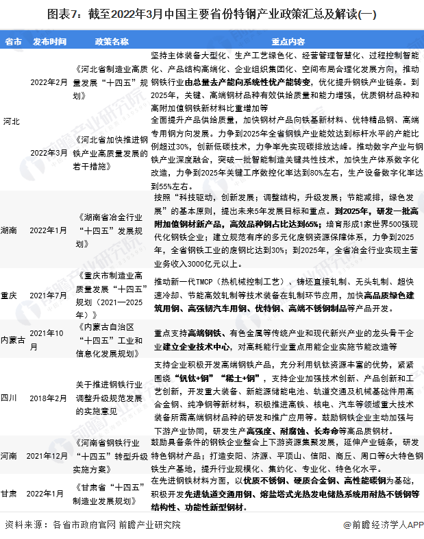 注:上述列出的是近期已提出特钢产业相关政策的省份。