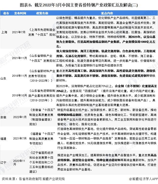 “十四五”期间,山东、湖南、上海等地均提出特钢产业发展的具体指标,另外河北、辽宁、天津、甘肃等地均对特钢产业的重点品类、发展方向等方面做出具体部署,具体情况如下: