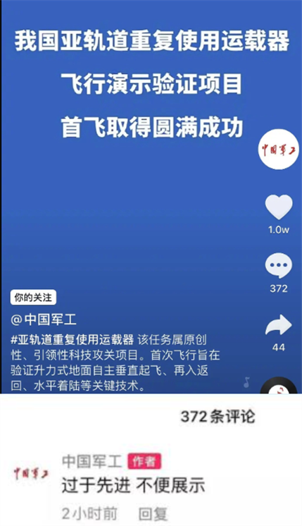 2021年中国进行了一次“过于先进,不便展示”的实验,虽然中国声称是可重复使用航天器,但外媒普遍认为这是一枚可搭载核弹头的高超音速滑翔飞行器。
