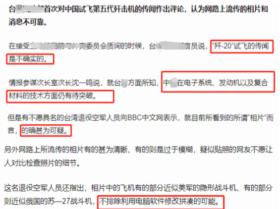 在之后好几年里,台湾地区都不愿相信这个结果,多次称中国大陆的歼-20是假货,都是PS图片或者用玩具模型制作出来的。