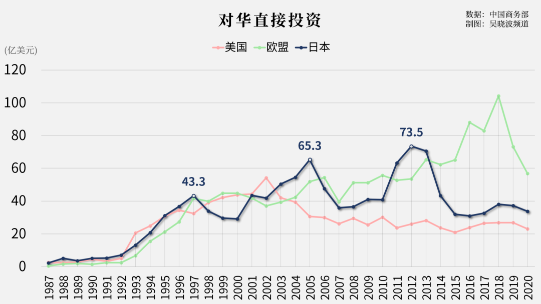 日本对华投资有过三次高峰: