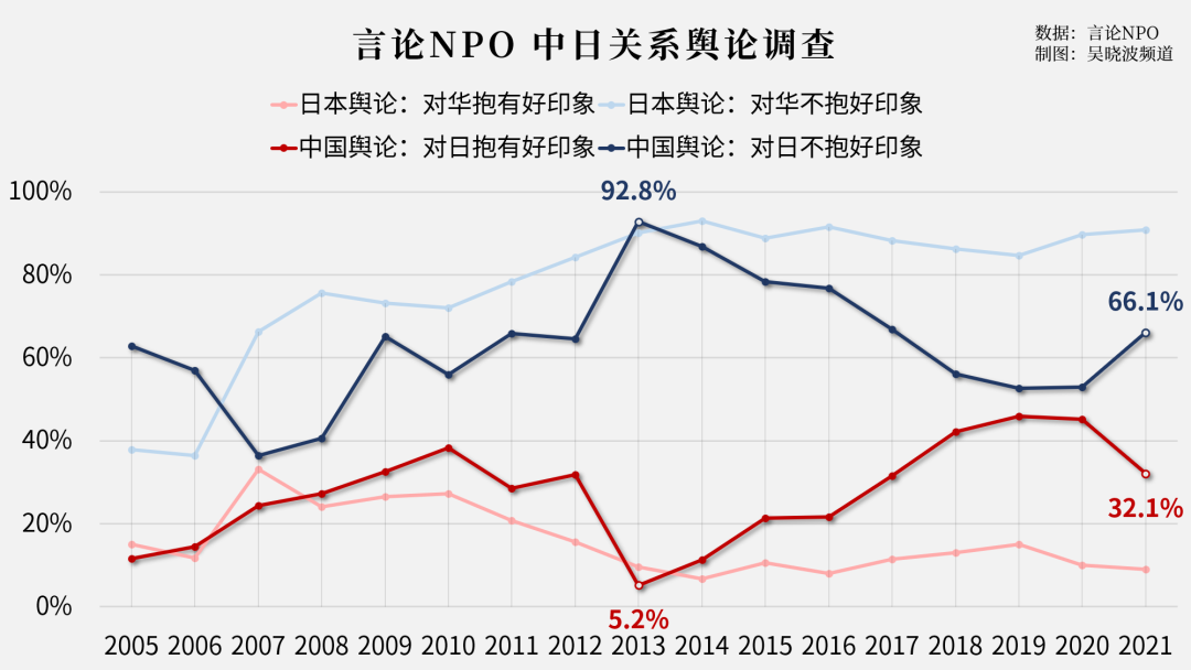 在2012年,野田佳彦政府试图将钓鱼岛国有化之后,中国舆论对日本的态度达到冰点。