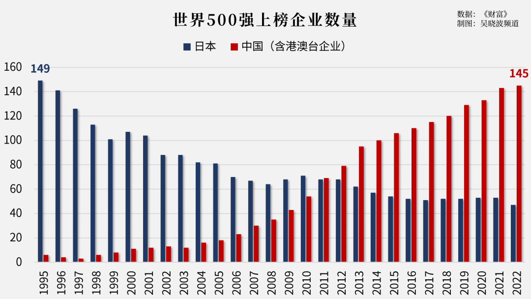 1995年,《财富》杂志首次发布“世界500强”榜单,共有149家日本企业上榜。