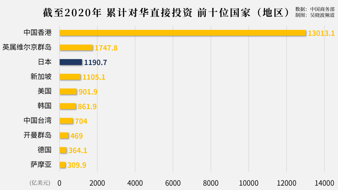 即便如此,日本仍然是累计对华投资额最高的国家。