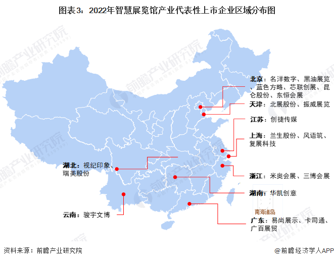 从代表性企业分布情况来看,我国智慧展览馆代表企业分布在北京、天津、上海、浙江、湖北、广东等省份。