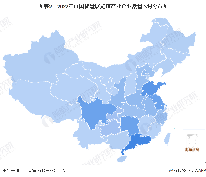 通过企查猫对“智慧展览馆”进行精确搜索显示,从智慧展览馆企业区域分布来看,行业企业主要分布在广东(1.97万家)、山东(1.11万家)、湖南(0.97万家)、江苏(0.81万家)、四川(0.61万家)等省份,其余省份企业不足0.5万家。